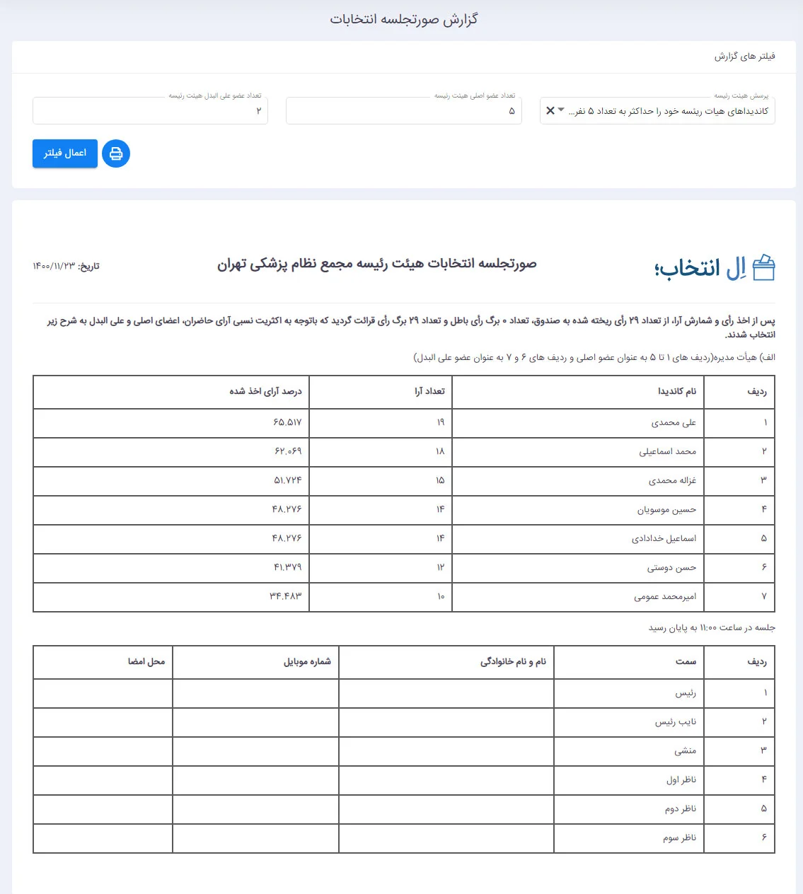 پس از اتمام برگزاری انتخابات باید وارد قسمت گزارشات / گزارش صورتجلسه شوید.