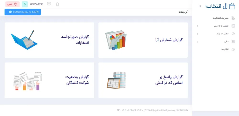 هنگامی که انتخابات به پایان رسید شما می توانید با مراجعه به صفحه مشاهده گزارشات، گزارش های انتخابات را بسازید.